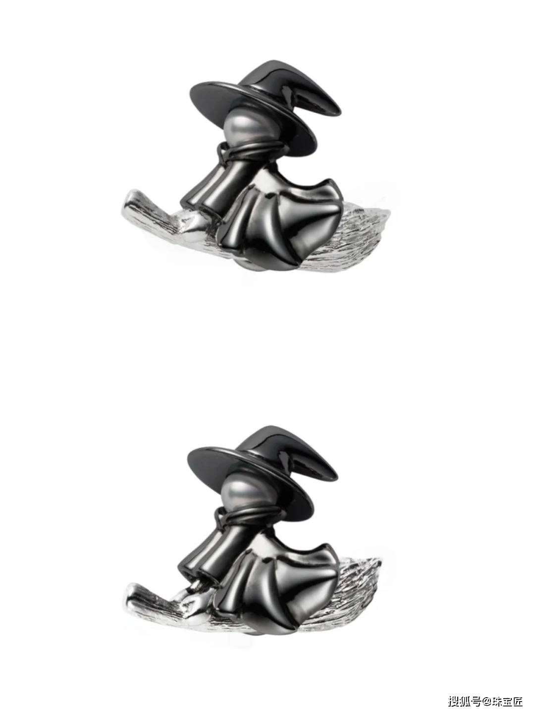 这款 “飞天女巫” 胸针,更是将万圣节的灵动意思藏进了珠宝细节里。制型定格女巫骑着扫帚腾空的倏得,衣摆弧度、扫帚纹理都用细腻金工勾画,圆活灵巧。