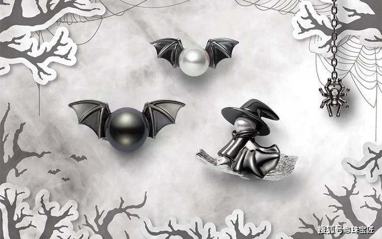 将珍珠的温顺和万圣节的暗黑风完备统一,既保存了高级珠宝的质感,又众了几分节日的意思,不愧是号称“珍珠之王”的御木本。