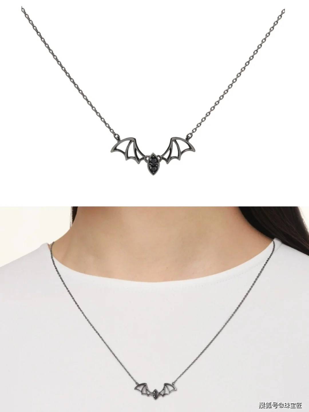 先说蝙蝠款~用玄色镀铑白金做成羽翼制型,中央镶了颗超有质感的南洋黑珍珠当蝙蝠身体,奥秘中带着点小俏皮,妥妥的暗夜小精灵!