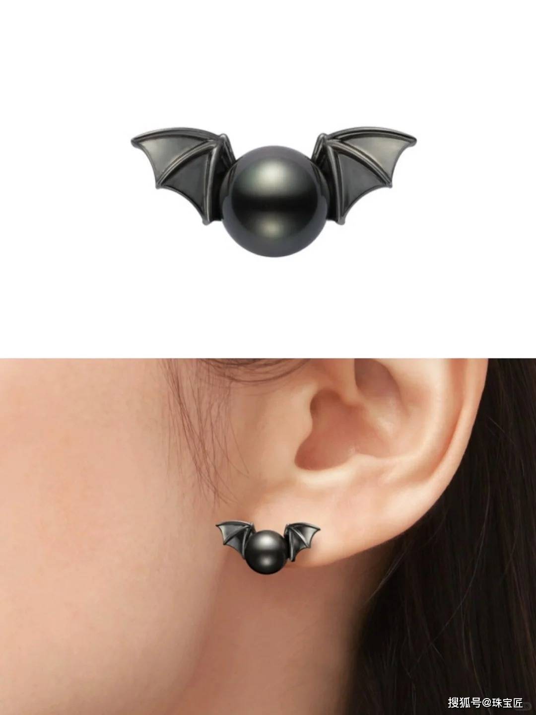 两款超有feel的单边耳环,以万圣节经典元素“蝙蝠”和“蜘蛛”为灵感源泉,将珍珠和镀黑金属混搭得超有觉得。