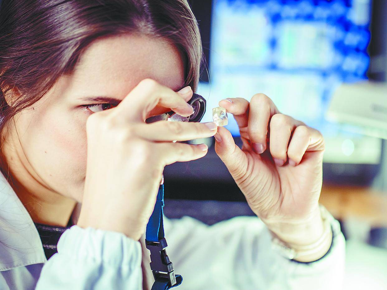 西伯利亚矿山的原石被运抵此处切割,厂区地球仪标志环球营业领土,也藏着俄罗斯钻石的环球野心,24岁的阿拉用稹密仪器酌量钻石内部机合,辨认代价与用处。